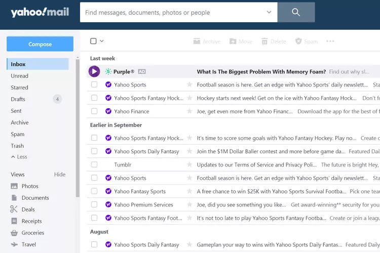 Yahoo Mail примечателен тем, что каждый новый пользователь получает 1 ТБ бесплатного хранилища для электронной почты. Окно составления письма похоже на Gmail, но есть одно полезное отличие: легко переключаться между вложениями изображений и вложениями обычных файлов.