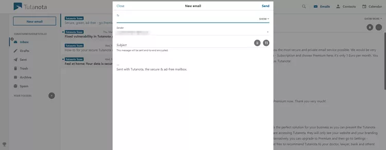 Лучшей особенностью является то, что когда пользователь отвечает на электронное письмо, не используя Tutanota, сообщения все еще содержатся во временной учетной записи. Вы можете общаться туда и обратно с любой другой почтовой службой, а получатель может все время держать ссылку открытой.