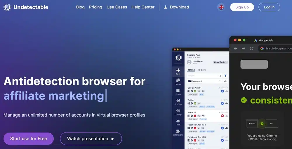 Undetectable – еще один браузер-антидетектор, который можно использовать для управления несколькими учетными записями. Как и в других браузерах-антидетекторах, каждый профиль браузера представляет собой уникальный браузер. Этот антидетектор известен тем, что поддерживает несколько вариантов хранения профилей браузеров. Undetectable предоставляет возможность сохранять профили браузеров локально, на их сервере или на собственном сервере.