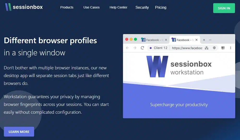 SessionBox во многом напоминает инструмент Ghost Browser, так как каждая вкладка рассматривается как браузер serape и, соответственно, имеет свою собственную сессию и окружение браузера. Это означает, что, как и в случае с Ghost Browser, вы можете управлять несколькими учетными записями из одного окна. Одна из особенностей Sessionbox заключается в том, что, помимо обычного приложения, он предоставляет. В нем также есть поддержка расширения для браузера.