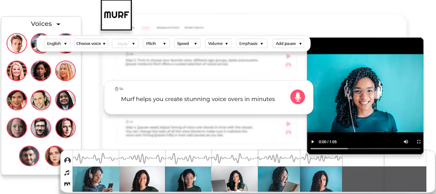Murf.ai – это универсальный генератор голоса ИИ с 100+ реалистичными голосами преобразования текста в речь на 15+ языках. Murf Studio довольно проста в использовании и предоставляет несколько функций настройки голоса, таких как акцент, высота тона и скорость, которые помогут вам получить максимальную отдачу от голосовой технологии, основанной на ИИ. Созданные голоса звучат довольно реалистично и могут быть использованы в различных приложениях. Вы можете добавлять дикторский текст непосредственно в видео, презентации и даже добавлять фоновую музыку. Murf широко используется для создания дикторских голосов для eLearning, специалистов L&D, озвучивания демонстраций продуктов, маркетологов, аудиокниг, YouTubers и Podcasters. Проекты автоматически сохраняются для последующего редактирования, а Murf предоставляет пользователям полные коммерческие права на дикторские голоса, созданные на их платформе. Murf предлагает бесплатную пробную версию с 10 минутами генерации голоса для тестирования голосов и функций. Стоимость платной версии начинается с 9 долларов за 30 минут. Планы подписки (включая Basic, Pro и Enterprise) позволяют создателям добавлять высококачественный звук к своему контенту за считанные минуты. Инструмент также имеет функцию совместной работы для пользователей Pro и Enterprise, где команды могут работать вместе для создания озвучивания в масштабе с помощью этого инструмента.