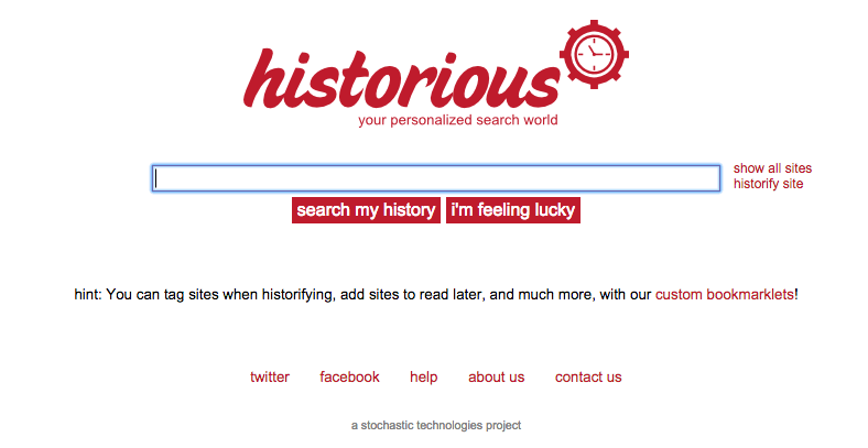 Historious не обладает огромным набором функций, как большинство приложений для создания закладок, но одну вещь он делает очень, очень хорошо: Поиск. Домашняя страница Historious – это рифф с Google, даже знаменитая кнопка “Мне везет” скопирована. Добавьте контент в свой аккаунт Historious с помощью букмарклета или расширения. Оно кэширует страницы в вашей библиотеке, так что вы можете искать все содержимое статьи с домашней страницы Historious. Затем вы можете прочитать кэшированную версию страницы или запустить живую ссылку, чтобы получить самую актуальную версию. Historious даже включает в себя теги для более глубокой организации. Но по большей части вы будете сохранять ссылки, а затем использовать Historious в качестве первого места для поиска. Это ваш личный Google.