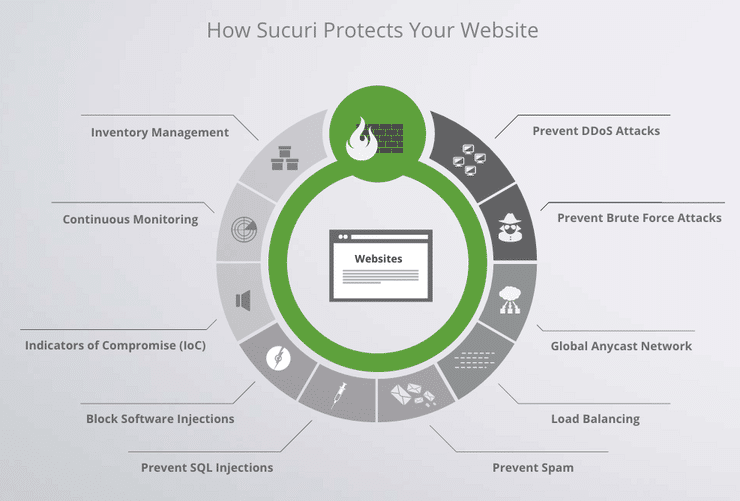 Когда речь заходит о сравнительных списках веб-брандмауэров, Sucuri Website Firewall является серьезным соперником. Он предлагает защиту от хакеров, пытающихся использовать 10 лучших уязвимостей OWASP, включая SQLi, XSS и CSRF. Он также включает смягчение последствий атак типа “отказ в обслуживании” (DDoS), подкрепленное непрерывным мониторингом. Sucuri Website Firewall перехватывает и проверяет все входящие HTTP/HTTPS запросы сайта.
