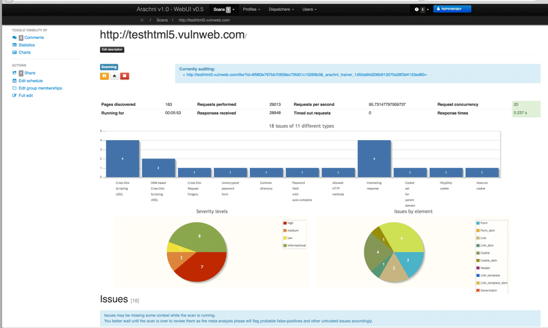 Вы можете получить отчет об аудите в формате HTML, XML, Text, JSON, YAML и т.д. Arachni позволяет расширить возможности сканирования до следующего уровня за счет использования подключаемых модулей. Ознакомьтесь с полными возможностями Arachni и загрузите его, чтобы испытать его.