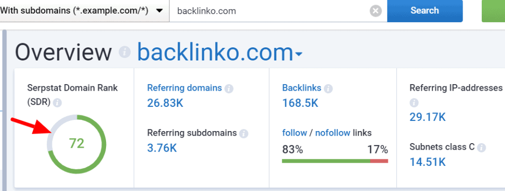 В чем преимущество использования Serpstat перед Moz? Анализ обратных ссылок – одна из ключевых функций инструмента Serpstat. Просто введите домен, чтобы быстро проанализировать данные об обратных ссылках. Вот как это выглядит;