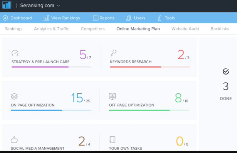 В чем преимущество использования SE Ranking перед Moz? SE Ranking предоставляет вам уникальную функцию под названием “Маркетинговый план”, которая дает вам подробную дорожную карту для создания вашей маркетинговой и SEO стратегии. Вот как это выглядит;