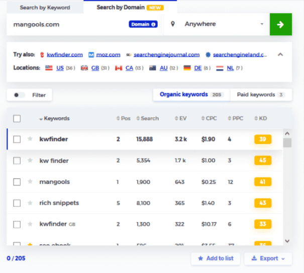 - Инструмент Keywords Explorer для поиска лучших ключевых слов