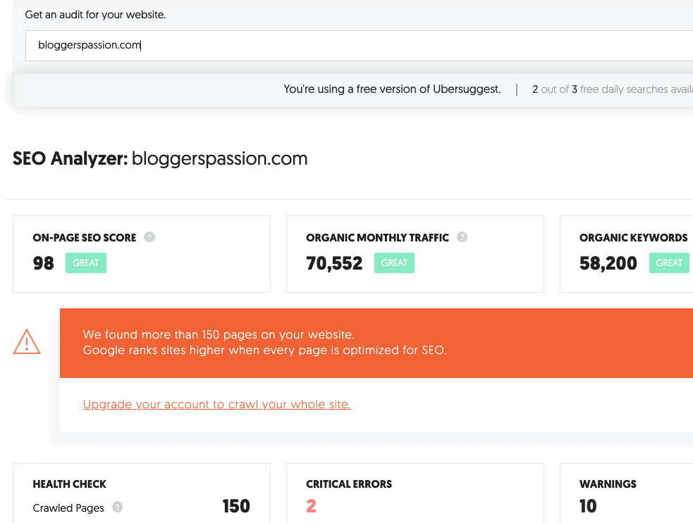 В чем преимущество использования Ubersuggest перед Moz? SEO Analyzer – это одна из основных функций Ubersuggest, которая помогает вам провести аудит вашего сайта на предмет критических проблем SEO. Вот как это выглядит;