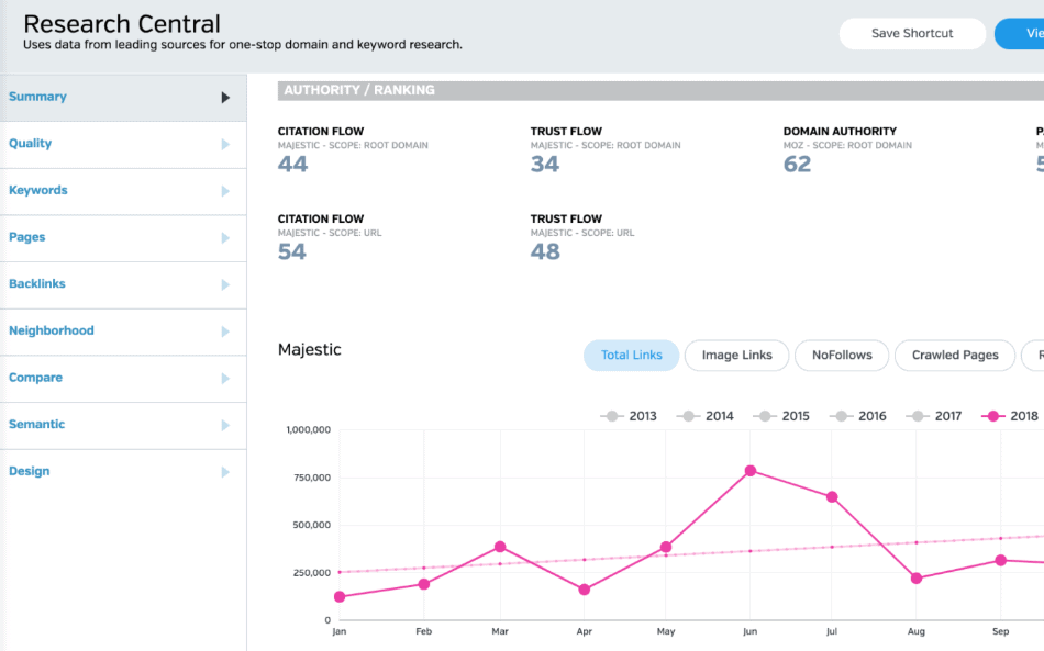 Majestic – одна из ближайших альтернатив Moz, которая предлагает множество функций, как и инструменты Moz. Вот несколько инструментов, к которым вы получите доступ, как только зарегистрируетесь на Majestic SEO tool. Этот инструмент представляет собой мега-комбинацию и может помочь вам найти отличные ключевые слова для любой ниши, чтобы проверить несколько ссылок за один раз. Он также поможет вам найти историю обратных ссылок любого сайта, чтобы вы могли найти неограниченные возможности для наращивания ссылок для увеличения поискового трафика.