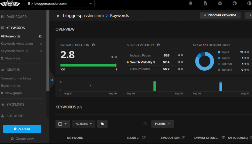 Как вы можете видеть выше, он предоставляет вам важные показатели отслеживания ранга ключевых слов, такие как;