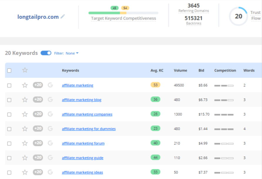 В чем преимущество использования Long Tail Pro перед Moz? Одним из основных преимуществ использования Long Tail Pro является то, что он помогает легко определить сложность ЛЮБОГО ключевого слова. Как только вы введете ключевое слово в их инструмент, он покажет вам важные данные ключевого слова вместе с его конкурентоспособностью. Вот как это выглядит;