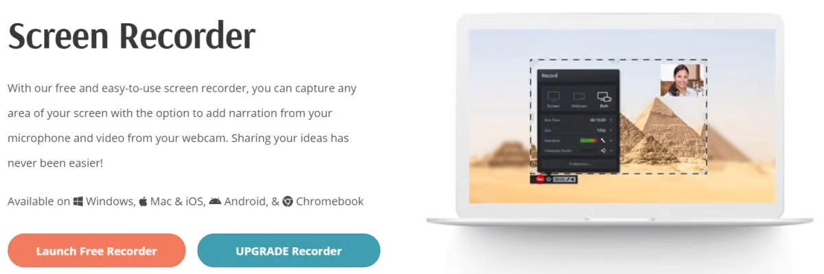Одним из лучших решений для записи экрана и редактирования видео является Screencast-O-Matic. Она была выпущена еще в 2006 году и может быть легко запущена прямо из браузера. Она совместима с Windows, Chrome и macOS, и вы можете воспользоваться любой из ее бесплатных или платных программ. У них есть собственная библиотека стоков, где можно найти идеальные изображения и видео для улучшения качества ваших проектов. Захватите весь экран компьютера или определенную его часть, чтобы начать запись. Вы можете добавить и настроить свою веб-камеру, чтобы сделать идеальные снимки. Интересно, что с помощью микрофона вы также можете добавлять дикторский текст к захваченным записям. Добавьте титры, музыку, обрежьте запись, чтобы удалить ненужные части, и сохраните ее на компьютере или загрузите на YouTube или Screencast-O-Matic. Вы можете рисовать во время записи, масштабировать и панорамировать, чтобы захватить важные части экрана, использовать интерактивные и автоматические титры, редактор сценариев и даже импортировать сценарии. Персонализируйте записи с помощью интеллектуального видеоредактора, который поможет вам смешивать и сопоставлять записи, импортировать видео и аудио. Поднимите свои презентации на новый уровень, украсив видео потрясающими анимациями, наложениями и т.д. Вы можете размывать, выделять области, добавлять стрелки, фигуры и линии; создавать переходы, изменять цвета, шрифты и размеры; замедлять или ускорять определенные участки видео; скрывать или показывать; масштабировать или обрезать веб-камеру; а также включить зеленый экран.