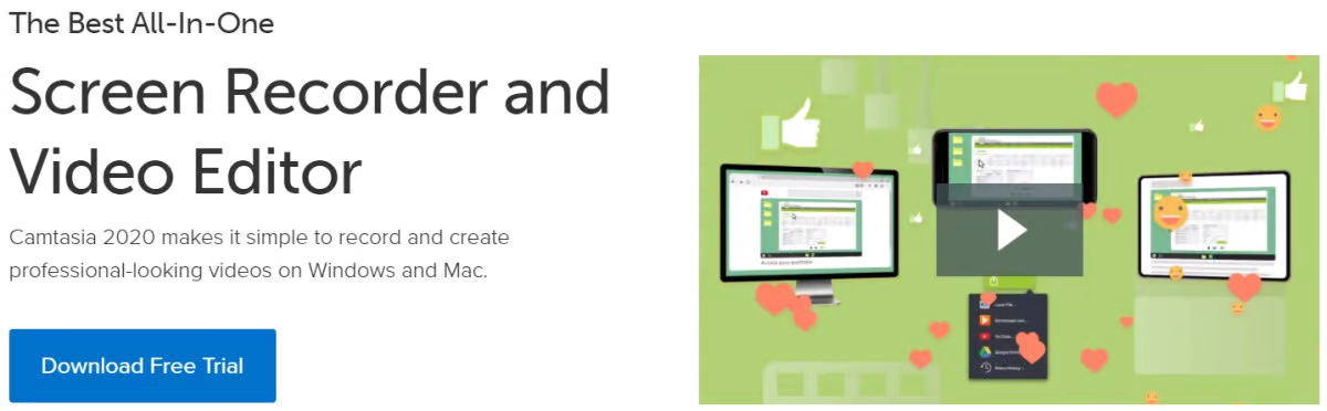 Camtasia позволяет легко записывать экран и превращать его в прекрасное видео, легко редактируя его. Она работает как на Mac, так и на Windows и считается одним из лучших универсальных инструментов на современном рынке. Она идеально подходит для создания обучающих и тренировочных видео, демонстрационных роликов, образовательных уроков, скринкастов и презентаций. Camtasia позволяет одновременно записывать веб-камеру и рабочий стол, импортировать аудиодорожки и редактировать их, записывать дикторский текст, добавлять титульные слайды, видеотитры и многое другое. Camtasia обладает такими функциями, как встроенные видеошаблоны для сокращения времени редактирования, создание индивидуальных шаблонов и совместное использование этих шаблонов, тем, библиотек, избранного и ярлыков в одном файле. Его редактор с функцией перетаскивания обеспечивает легкое редактирование и имеет настраиваемые безвозмездные активы, чтобы придать вашим видео профессиональную законченность. Приобрести этот инструмент можно по цене $249,99. Или есть вариант, когда вы можете купить пакет, содержащий и Camtasia, и Snagit для захвата всего, что вы хотите на экране, который стоит $274,99.
