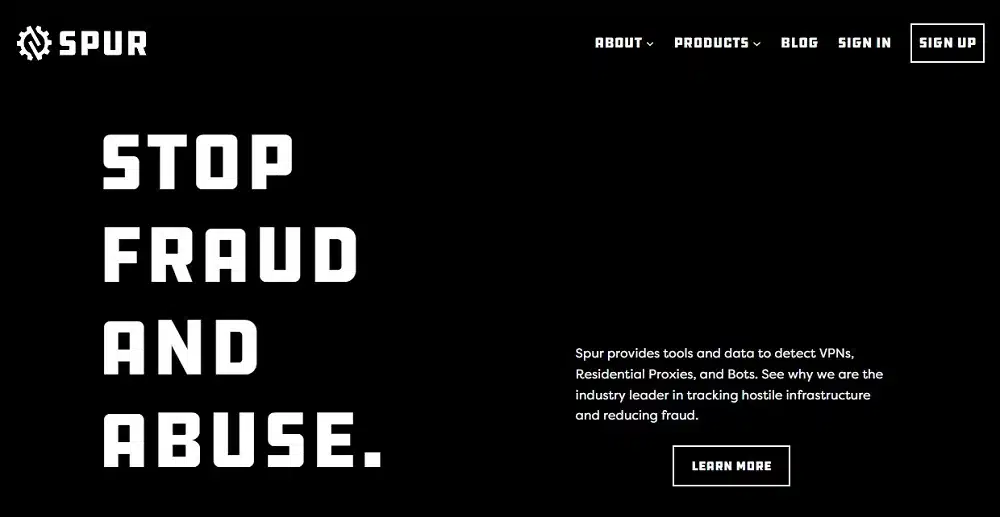 В нем собраны данные о более чем 800 различных провайдерах VPN и прокси, среди которых основными являются прокси-сервисы для жилых домов. Помимо помощи в обнаружении прокси- и VPN-соединений, Spur также хорошо справляется с обнаружением ботов, что делает его не просто обычным идентификатором прокси – он сам по себе является системой защиты от спама.