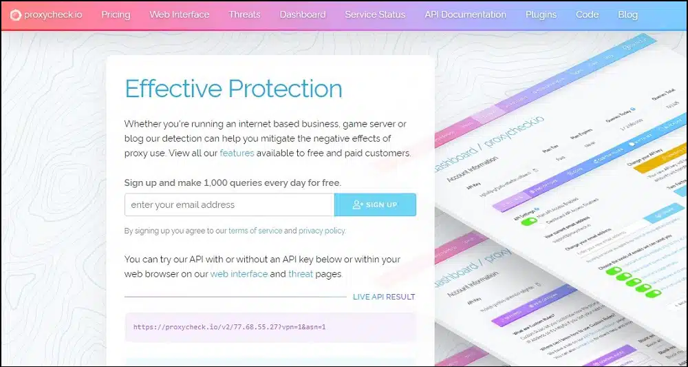 Из названия этого инструмента можно понять, что это API. По сравнению с сервисами определения конфиденциальности SEON и IPInfo.io он стоит довольно дешево. Цена на эту услугу варьируется от 19 до 99 долларов США, что считается очень дешевым. При этом не стоит ожидать такой точности, как в других сервисах. Этот сервис лучше всего справляется с выявлением публичных прокси и VPN. Он сканирует бесплатные прокси-сайты и ведет огромную базу данных публичных IP-адресов.