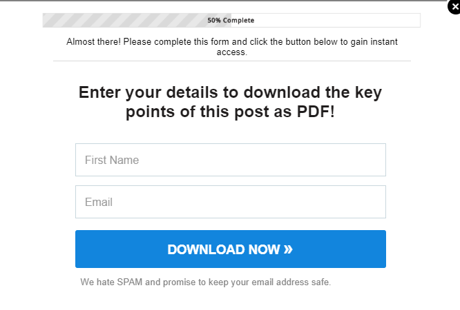 Это простое всплывающее окно. Просто укажите свое имя и адрес электронной почты, и вы сможете скачать статью блога в формате PDF.
