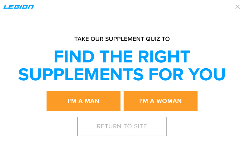 Посмотрите на всплывающее окно, которое появляется на сайте Legion Athletics.
