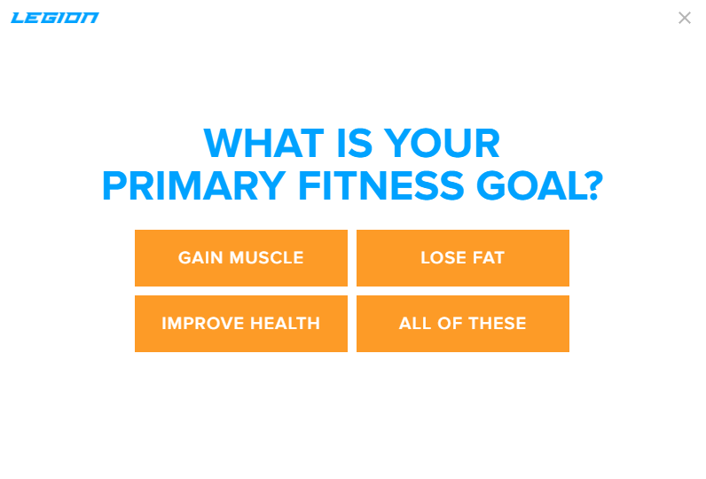 Оно приглашает вас принять участие в викторине о дополнениях. Чтобы начать, вам нужно нажать на одну из двух кнопок. Затем вас спросят о вашей основной фитнес-цели.