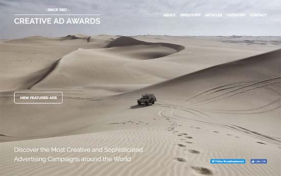 Creative Ad Awards – это место, где отмечаются лучшие рекламные объявления со всего мира. На главной странице сайта расположено большое полноэкранное фоновое изображение, за которым следуют категории с возможностью фильтрации, окно поиска и сетка последних сообщений.