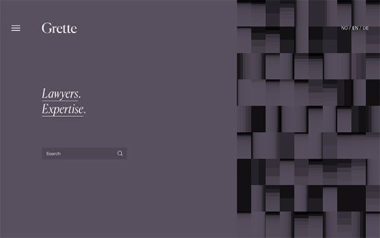 Grette – это норвежская фирма, специализирующаяся на юридическом сопровождении бизнеса. Их сайт отличается минималистичным дизайном, свернутым навигационным меню, профилями сотрудников и страницами экспертных знаний.