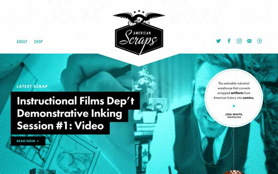 American Scraps превращает обрывки артефактов из американской истории в комиксы. Он отличается поистине уникальным дизайном: вверху – последний обрывок, за ним – другие недавние обрывки и историческая хронология.