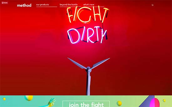 method – производитель экологически чистых чистящих средств. На их сайте есть мега-меню сверху, красочные фоновые изображения и красивая анимация.