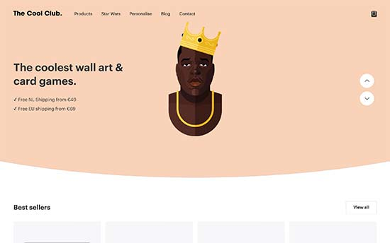 Cool Club продает великолепно оформленные настенные рисунки и карточные игры. На их сайте представлены их настенное искусство и карточные игры, которые поднимают весь дизайн. Их интернет-магазин увлекателен для просмотра и работает на базе WooCommerce.