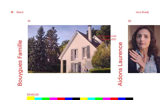 Jony Guedj – это веб-сайт режиссера-фрилансера. На нем используются цветовые полосы SMPTE для горизонтальной навигации, показывающие работы художников по мере того, как вы проводите мышью по полосе. Это необычно и минималистично, что делает дизайн более интересным и увлекательным.