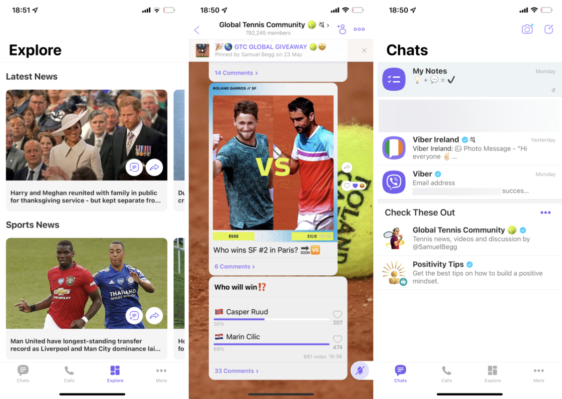 Viber – это еще одно отличное приложение для обмена сообщениями с миллионами пользователей по всему миру. Приложение объединяет обмен текстовыми и мультимедийными сообщениями с бесплатной услугой голосовых и видеозвонков. Общайтесь с отдельными пользователями или создайте групповой чат с количеством участников до 250 человек, где вы сможете обмениваться мгновенными голосовыми и видеосообщениями без необходимости совершать звонок. Это идеальное решение для тех случаев, когда вы слишком заняты, чтобы разговаривать, и слишком ленивы, чтобы набирать текст. Хотя многие другие приложения включают в себя голосовые сообщения (например, WhatsApp, см. выше), Viber позволяет так же легко отправить видеосообщение для более личного общения. Кроме того, GIF-файлы и стикеры встроены в чаты, чтобы оживить беседу. Сквозное шифрование является стандартом во всех чатах Viber, как индивидуальных, так и групповых. Однако каналы и сообщества не имеют сквозного шифрования (так как в этом случае новые участники не смогут увидеть историю чата). Это небольшая жертва безопасности во имя предоставления лучшего сервиса. Помимо бесплатных голосовых и видеозвонков другим пользователям Viber, услуга под названием Viber Out позволяет вам звонить на любые мобильные и стационарные телефоны в мире сколько угодно за $5,99 в месяц. Это похоже на Skype, только с лучшими методами обеспечения безопасности и более красивым приложением для смартфонов. Viber использует сдержанный, минимальный дизайн с дополнительным темным режимом, доступным в меню “Внешний вид” приложения. Чаты и звонки вынесены на отдельные вкладки, а второстепенные функции Viber (например, рынок стикеров) вынесены на отдельную третью вкладку. Если чат становится слишком шумным, вы можете провести пальцем влево и выбрать отключение звука или отложить его. Если у вас есть важный разговор, который вы хотели бы сохранить под рукой, его можно закрепить. Viber также предлагает сообщества – по сути, большие групповые чаты с незнакомыми людьми, к которым вы можете присоединиться или начать. В этих публичных чатах может быть неограниченное количество участников, а администраторы могут управлять чатами: определять, кто входит в группу и кто может писать сообщения, а также изменять внешний вид сообщества с помощью нового фона и описания группы. Вы можете найти сообщества по таким признакам, как местоположение, хобби и любимые команды. Вспомните Reddit, но больше похоже на групповой чат. Где Viber немного не дотягивает, так это в загруженности всего приложения. Магазины стикеров, всевозможные чаты и даже иногда реклама – все это делает приложение менее насыщенным, чем WhatsApp, особенно если вы не используете его уникальные функции, такие как Viber Out. Цена Viber: Бесплатно