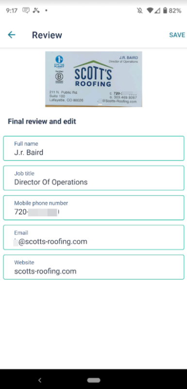 Лучшее приложение для сканирования визитных карточек для точности – BizConnect (Android, iOS)