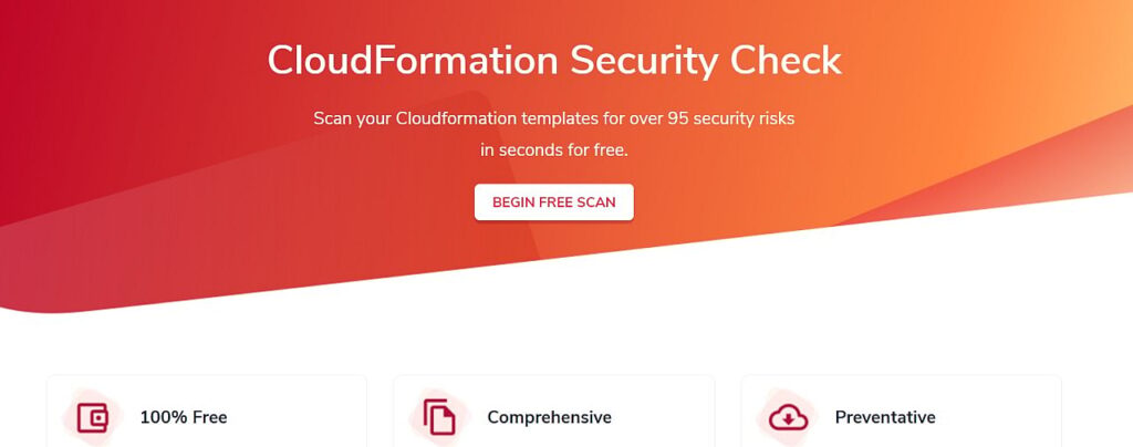 Снижение рисков безопасности путем сканирования шаблонов Cloudformation в течение нескольких секунд с помощью CloudSploit. Он может сканировать более 95 уязвимостей безопасности на 40+ типах ресурсов, состоящих из широкого спектра продуктов AWS. Он позволяет эффективно выявлять риски и внедрять средства защиты перед запуском облачной инфраструктуры. CloudSploit предлагает сканирование на основе плагинов, где вы можете добавить проверки безопасности при добавлении ресурсов AWS в Cloudformation.