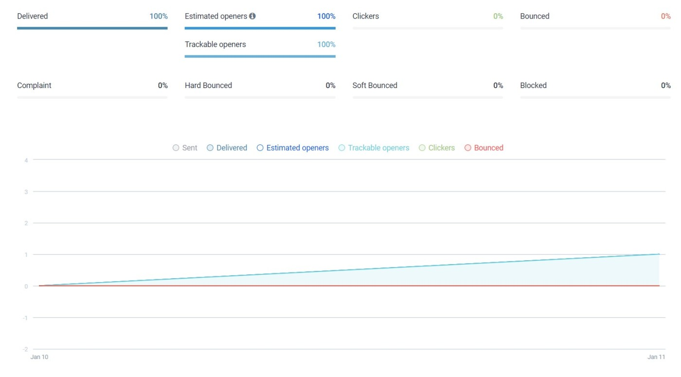 - Аналитика. Хотя потребность в данных различается в зависимости от бизнеса, всеобъемлющие цифры никому не повредят. Лучшие приложения для транзакционной электронной почты проверяют основные параметры, такие как анализ коэффициента открытости, отказов, жалоб на спам, а также выходят за эти рамки, делясь информацией о доставке, которая может улучшить вашу электронную почту.