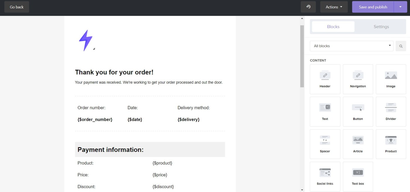 MailerSend – это воплощение мечты для нетехнических команд и разработчиков. Его конструктор электронных писем, созданный методом перетаскивания, очень интуитивно понятен, но есть также текстовый редактор и HTML для разработчиков, которым это необходимо. Есть также несколько шаблонов транзакционных писем, так что вам никогда не придется начинать с нуля. Я выбрал конструктор электронных писем с перетаскиванием и нашел 30 шаблонов – от простых уведомлений о доставке до сложных, таких как “заказ на удержании”. Я протестировал шаблон электронной почты для получения счета, и он был очень быстро настроен: добавление и удаление различных блоков контента (социальных ссылок, изображений и т.д.), изменение фона, изменение разделов – все это заняло менее 15 минут (учитывая, что все детали и вложения были доступны на моем рабочем столе). Весь процесс настройки был таким же простым: есть даже инструкции по аутентификации домена, которые всплывают в виде чатбокса, когда вы заканчиваете настройку. Я нашел это особенно полезным, потому что здесь есть руководство для различных поставщиков доменов, включая GoDaddy, Wix, Namecheap и другие – это означает, что пользователю не нужно искать другие ресурсы за пределами приложения. Но даже если что-то не работает, есть круглосуточная поддержка по электронной почте в бесплатном плане и круглосуточная поддержка в чате в платных планах. Цены на MailerSend: Бесплатно для рассылки до 12 000 писем в месяц. Стоимость премиум-плана составляет $25 в месяц за 50 000 писем; $0,90 за дополнительную тысячу писем.