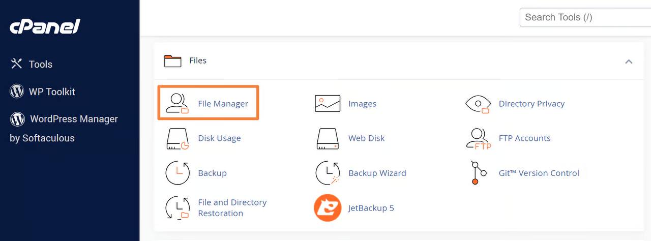 - После входа в cPanel перейдите в раздел Files и нажмите File Manager.
