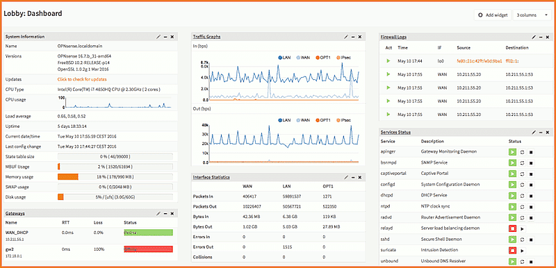 OPNSense имеет множество функций безопасности и межсетевого экрана корпоративного уровня, таких как IPSec, VPN, 2FA, QoS, IDPS, Netflow, Proxy, Webfilter и др. Он совместим с 32- или 64-разрядной архитектурой системы и доступен для загрузки в виде ISO-образа и USB-установщика.