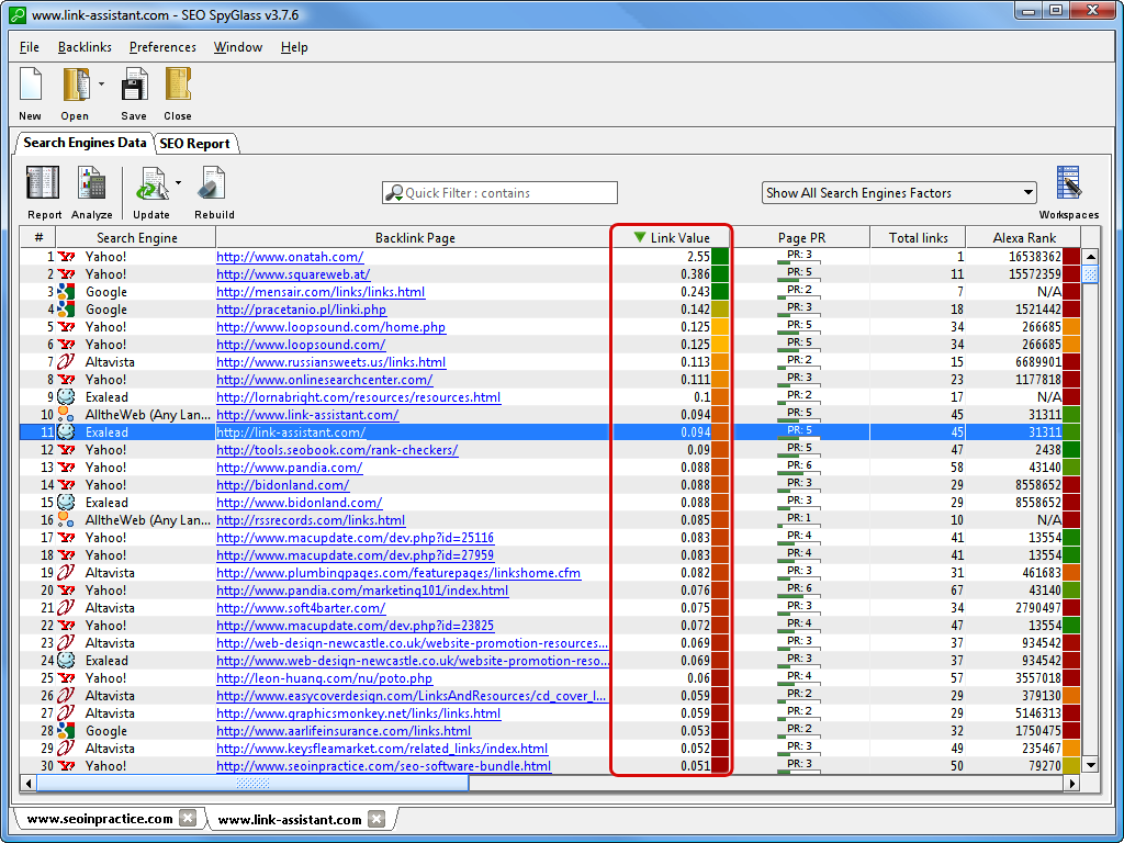SEO SpyGlass является частью SEO PowerSuite, набора инструментов, отмеченного множеством положительных отзывов. В отличие от большинства SEO-инструментов, этот представляет собой приложение, которое вы устанавливаете на свой компьютер, будь то Mac, Windows или Linux. Вы можете использовать его базовые функции бесплатно, сколько захотите, или заплатить $ 299 в год за профессиональную лицензию, которая предлагает такие преимущества, как неограниченный мониторинг обратных ссылок, планирование задач и основные функции отчетности, или $ 699 в год за корпоративную лицензию, которая раскрывает все функциональные возможности PowerSuite. Как сообщается, SEO Spyglass имеет самую большую базу данных ссылок среди всех известных инструментов. Вы также можете добавлять собственные ссылки, импортируя их непосредственно из Google Analytics и Google Search Console. Инструмент выявляет потенциально вредные ссылки, чтобы избежать наказания Penguin 4.0 (последняя версия поисковой системы Google). Он рассчитывает риски, связанные со штрафом, принимая во внимание те же факторы, которые использует Google. Если программа обнаружит угрозу, вы сможете нейтрализовать ее несколькими щелчками мыши, используя эксклюзивный генератор файлов дезавуирования SpyGlass – вам не придется беспокоиться о том, как сделать это правильно самостоятельно. Некоторые пользователи SpyGlass говорят, что этот инструмент позволил им дублировать свой органический трафик, только следуя его SEO-советам. Они даже говорят, что окупаемость инвестиций (ROI) версии Enterprise составила менее месяца, так что если вы серьезно относитесь к своей SEO-стратегии, вам стоит попробовать этот инструмент.