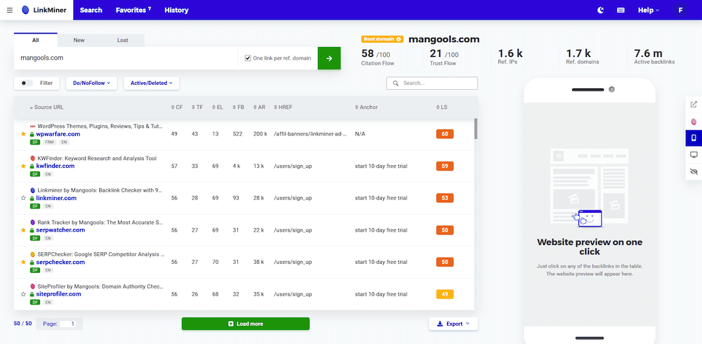 Большая база данных – больше, чем амбиции Элона Маска, как утверждает его собственный веб-сайт – это фундамент, на котором базируется LinkMiner. Просто введя доменное имя вашего конкурента, он может определить его самые мощные обратные ссылки, оценивая их с помощью таких известных показателей, как Citation Flow, Trust Flow и других. Простая панель визуализации позволяет избежать распространенной проблемы чрезмерного количества вкладок браузера: одним щелчком мыши вы получаете предварительный просмотр каждого ссылающегося сайта с выделенным размещением якоря. LinkMiner дает вам возможность найти обратные ссылки из всей своей базы данных, насчитывающей 9 триллионов обратных ссылок, или искать только самые новые данные, ограничить поиск ссылками 30-дневной давности. Опция “Lost” поможет вам найти удаленные обратные ссылки и получить возможность заменить своих конкурентов. Чтобы не отвлекаться на ссылки, которые имеют значение, LinkMiner предлагает сохранить лучшие находки в список. Вы можете сохранить наиболее релевантные обратные ссылки и вернуться к ним, когда захотите.
