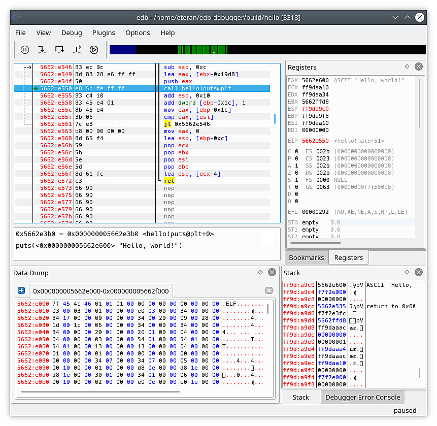 Одной из ключевых особенностей EDB является дружественный интерфейс, который делает его простым в использовании даже для тех, кто только начинает заниматься отладкой. Он включает в себя множество представлений, таких как представление дизассемблера, карта памяти и представление регистров, которые предоставляют подробную информацию о состоянии отлаживаемой программы. EDB также позволяет пользователям устанавливать точки останова, выполнять одношаговый просмотр кода и проверять значения переменных, что упрощает анализ и отладку программ. Кроме того, EDB поддерживает различные процессорные архитектуры и операционные системы, что делает его универсальным инструментом, который можно использовать на широком спектре платформ.