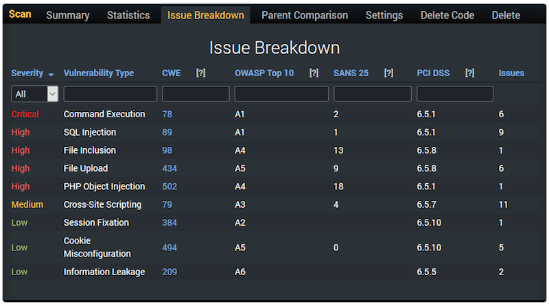 RIPS – это один из популярных инструментов статического анализа кода PHP, который необходимо интегрировать в жизненный цикл разработки для поиска проблем безопасности в режиме реального времени. Вы можете классифицировать найденные проблемы по отраслевому соответствию и стандарту, чтобы определить приоритетность исправлений.