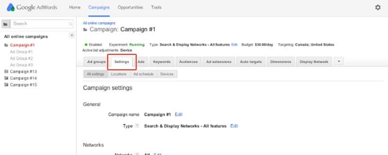 Чтобы не показывать ваши объявления этим IP-адресам, сначала необходимо войти в свою учетную запись и перейти на главную страницу. Вверху перейдите на вкладку “Кампании”, выберите кампанию слева и откройте ее настройки.