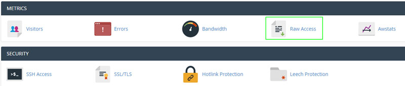 Перейдите на главную страницу cPanel и прокрутите вниз до вкладки метрик. Вы увидите раздел Raw Access, как на картинке ниже.