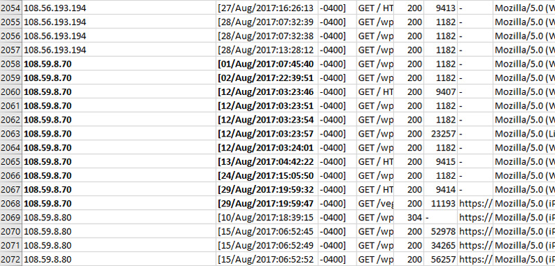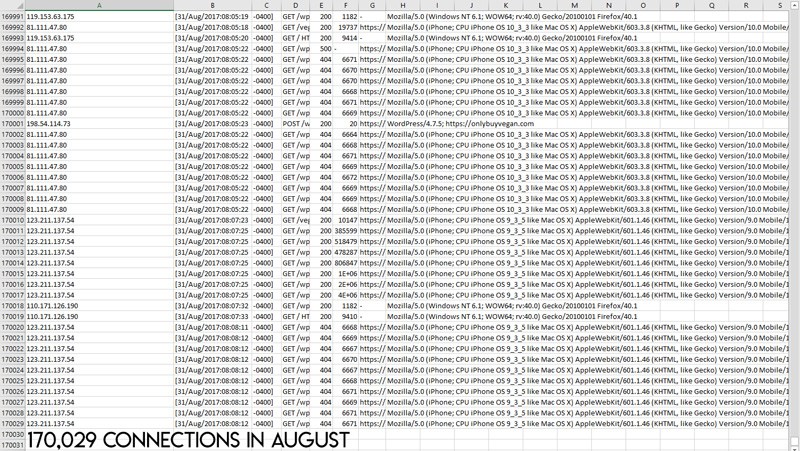 Как вы можете видеть в этом примере, наш файл содержит более 170,000 записей только за август. Если у вас большой сайт, то в логе может быть несколько миллионов строк или даже больше.