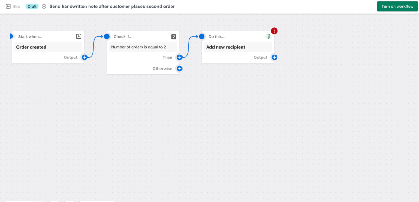 Автоматизируйте перед передачей на аутсорсинг с помощью Shopify Flow. Shopify Flow позволяет устранить повторяющиеся задачи, автоматизируя определенные процессы в вашем магазине Shopify. Вы можете выбрать триггер в Shopify или совместимом приложении, выбрать переменную для проверки (например, определенное число или метку), а затем выполнить действие при выполнении условий.
