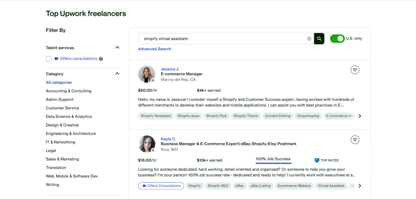 - Вам нужна специализированная проактивная поддержка. Один виртуальный консультант может работать в различных контекстах, но не обязательно иметь глубокий опыт в вашем. Если вы ищете именно это, подумайте о найме специализированного внештатного сотрудника. (Например, Shopify Experts – это фрилансеры и агентства, которые знают экосистему Shopify вдоль и поперек).