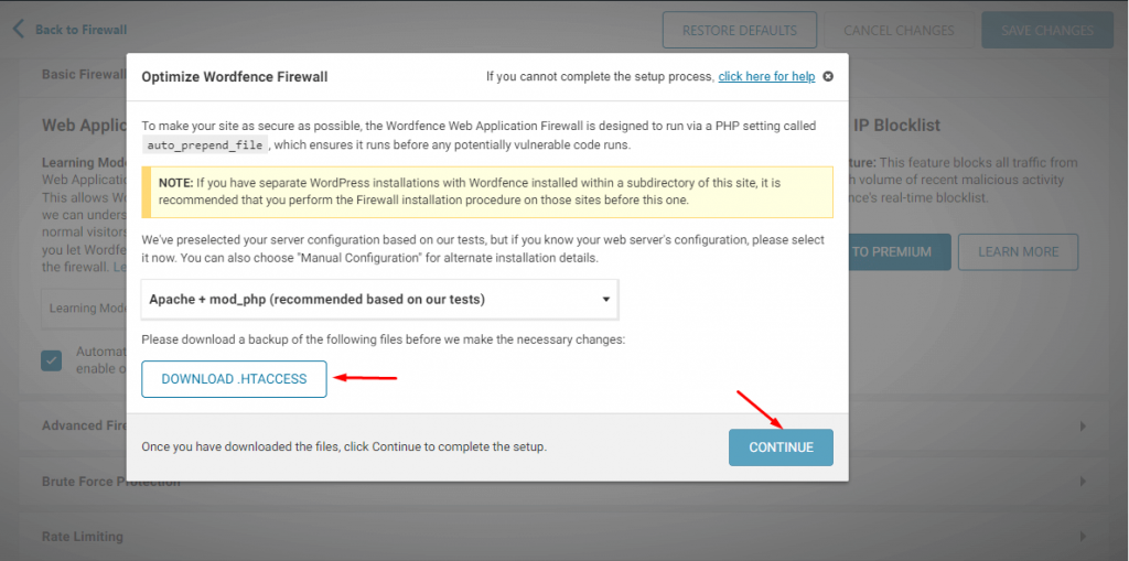 Загрузите файл . htaccess, как предлагает всплывающее окно, затем нажмите кнопку Continue для завершения оптимизации.