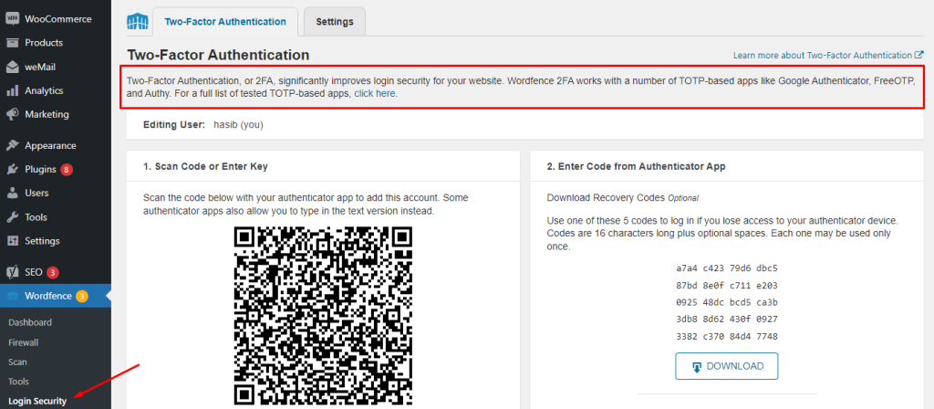 Шаг 4: Активируйте 2FA Security. Вы можете включить двухфакторную аутентификацию в меню Безопасность входа на левой боковой панели.