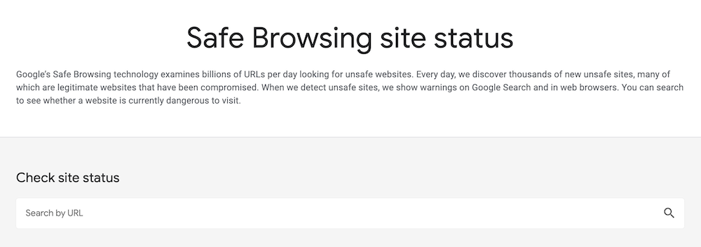 Один из популярных и наиболее важных способов проверить, не отнес ли Google ваш сайт к категории небезопасных. Site Status мгновенно проверяет заданный URL и выдает результат – безопасный или небезопасный.