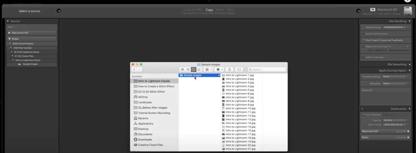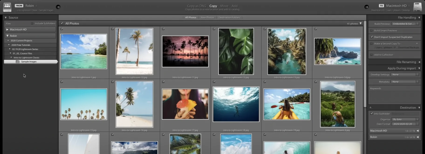 Импортируйте все изображения из папки в сессию. Посмотрите это видео, чтобы узнать, как это сделать, или следуйте пошаговым инструкциям ниже. Импортируйте папку с изображениями в Adobe Lightroom для пакетной обработки.