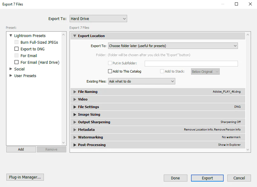 Место экспорта, имя файла и настройки файла важны для организованного рабочего процесса фотографии.