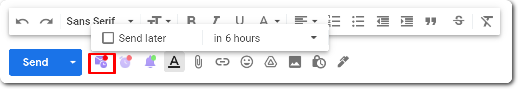 Вы можете настраивать каждое письмо отдельно: планировать время, устанавливать последующие напоминания, отслеживать историю открытий и кликов. Как пользоваться? Просто! Скачайте расширение, активируйте Snov.io Email Tracker для текущего аккаунта, создайте письмо, а затем нажмите на фиолетовый значок рядом с кнопкой “Отправить”. Запланируйте время: